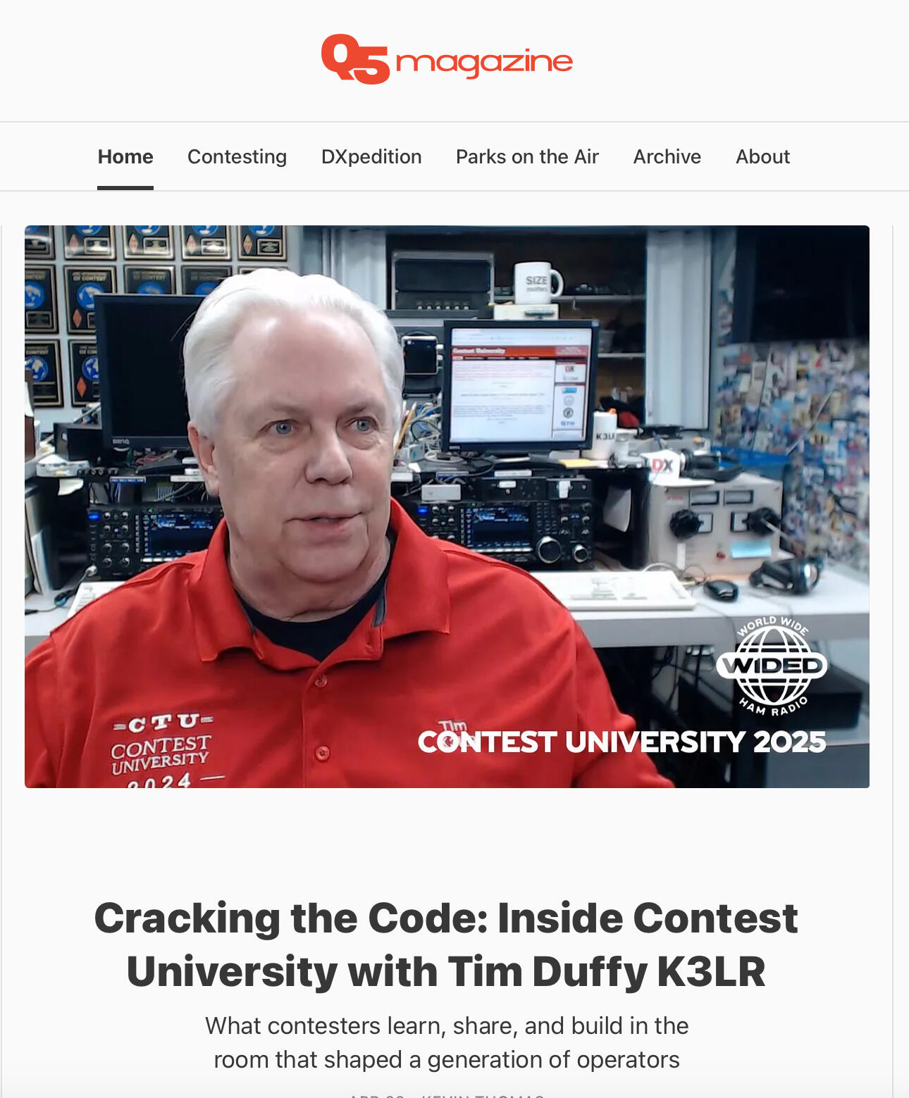 The W1RX interview was outstanding. Your channel is the graduate school for Contest University. - Tom KA1IS